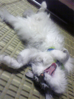 寝てるとね、こう、腕やら足やら背中やらに乗ってね、前肢で踏み踏みするんですよ。
