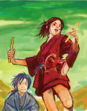 「鼓で遊ぶどろろとそれを穏やかに見守る百鬼丸」でした。